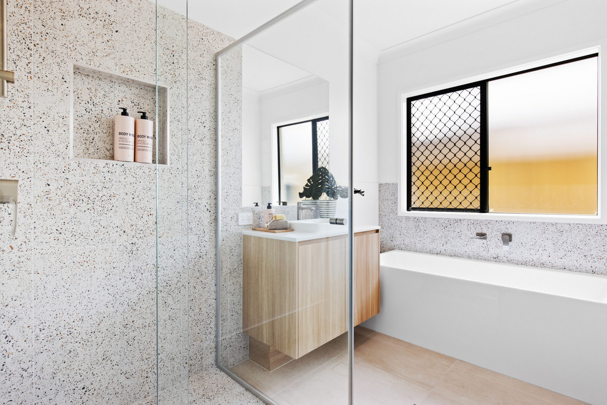 The bathrooms are equipped with quality basins, tap-ware, and tiled shower niches. Unwind after a long day in the luxurious 1525mm inset bath in the main bathroom (design specific).