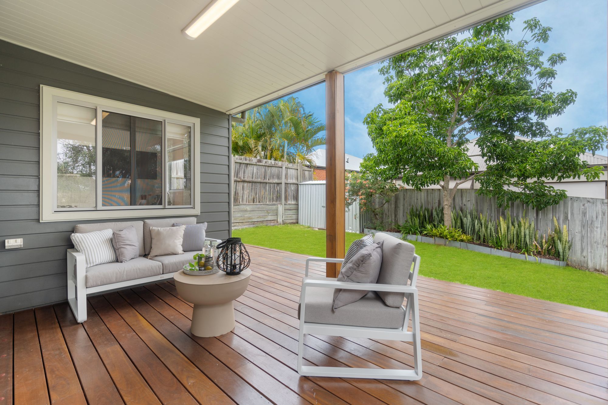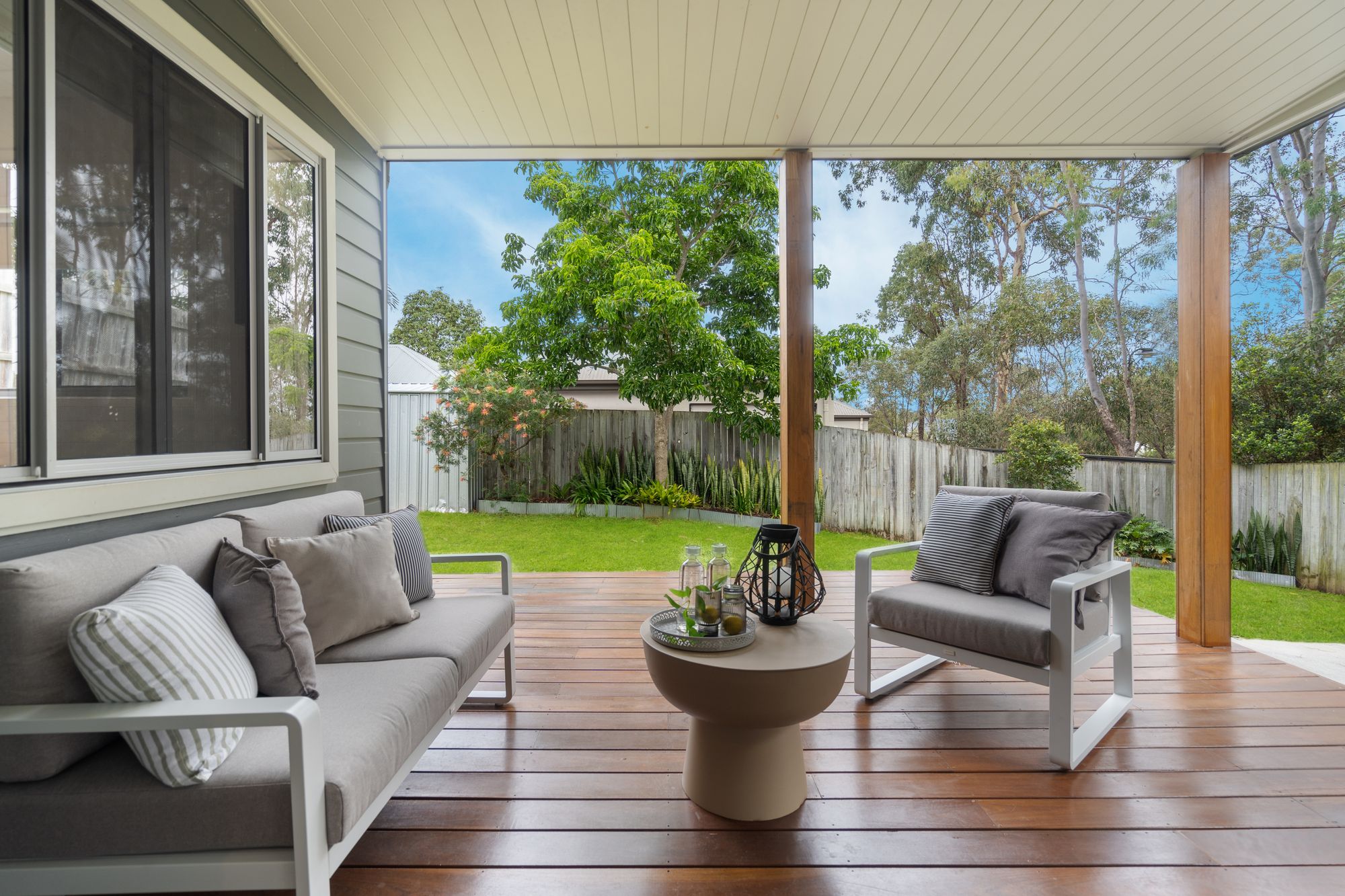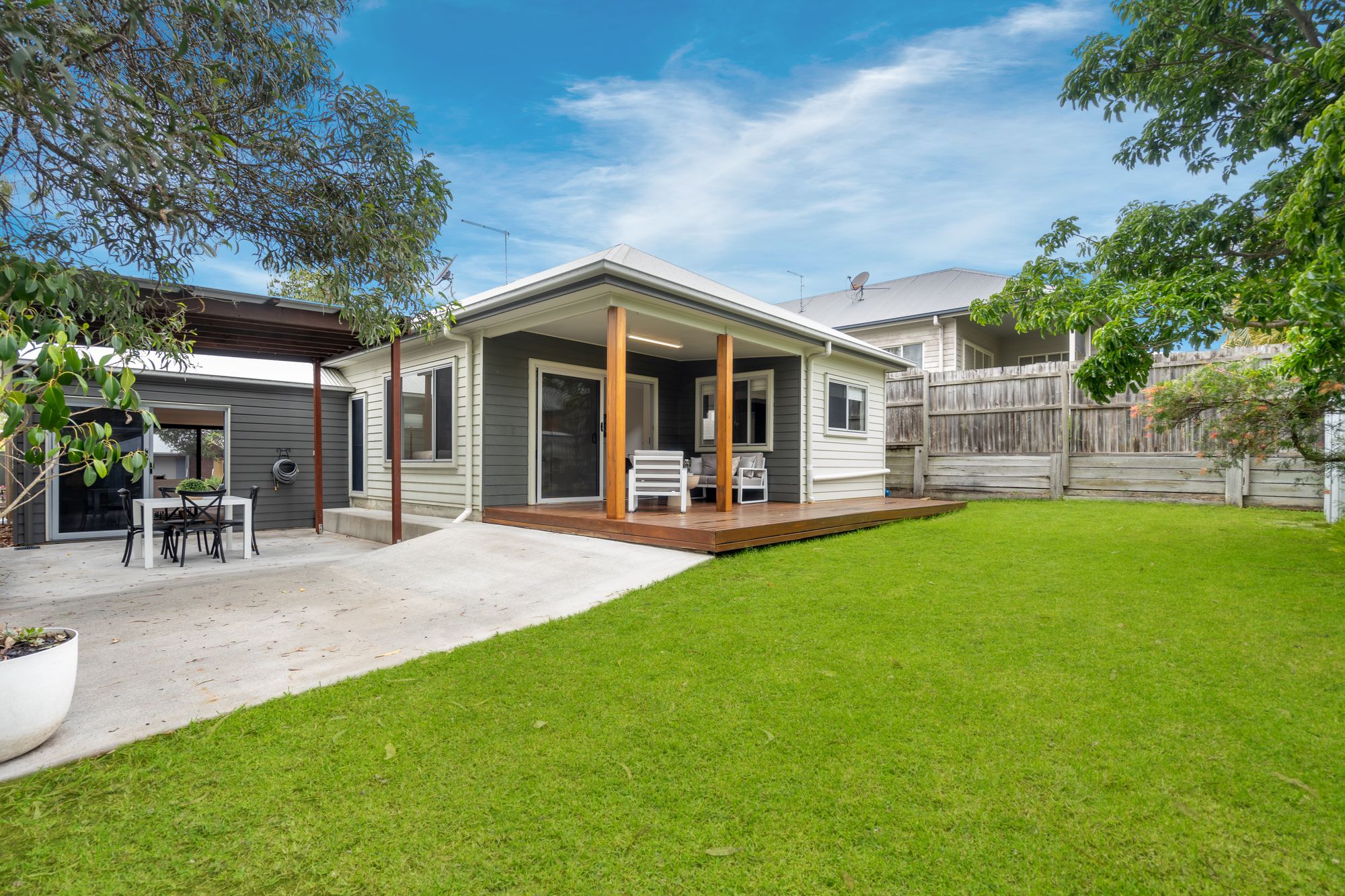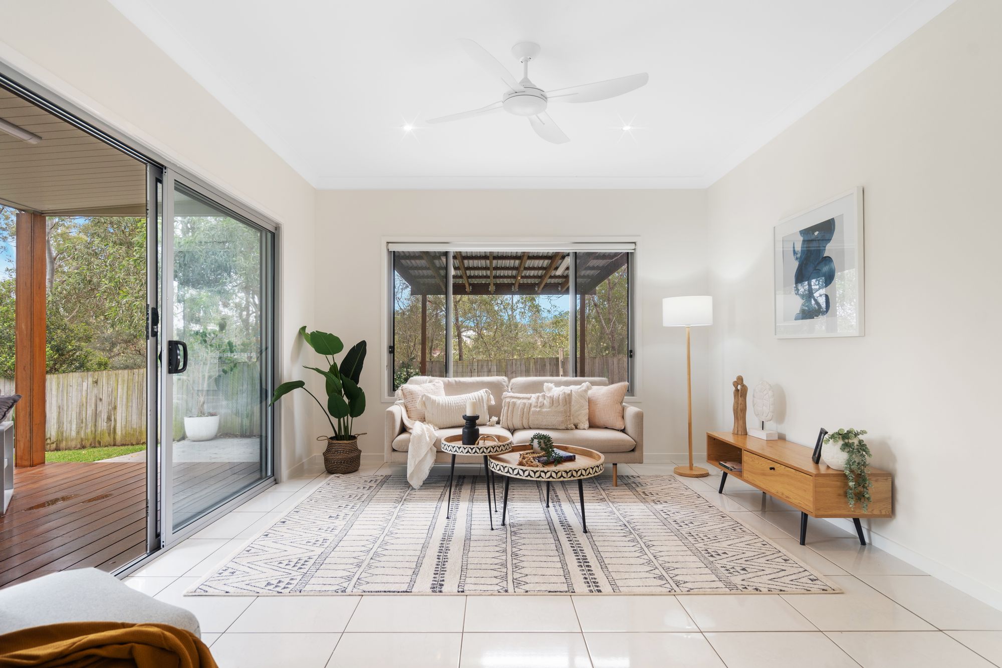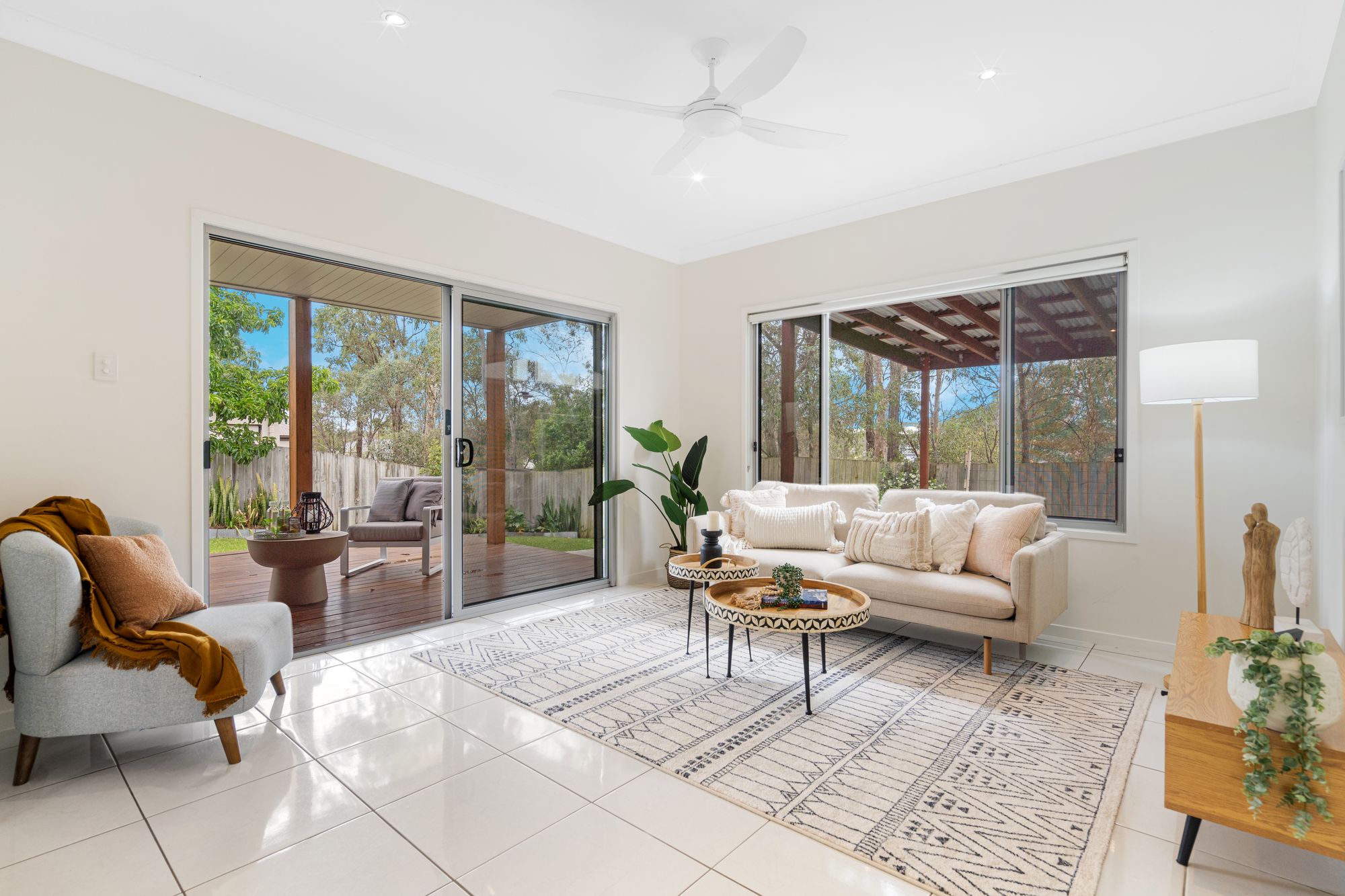 Moving outdoors, this property boasts a fully fenced garden providing ample privacy and security. There are 2 outdoor entertaining areas perfect for hosting gatherings or simply enjoying peaceful evenings outdoors. Located in a quiet street backing on to nature this property is close to local schools, Robelle Domain and Orion Shopping Centre.