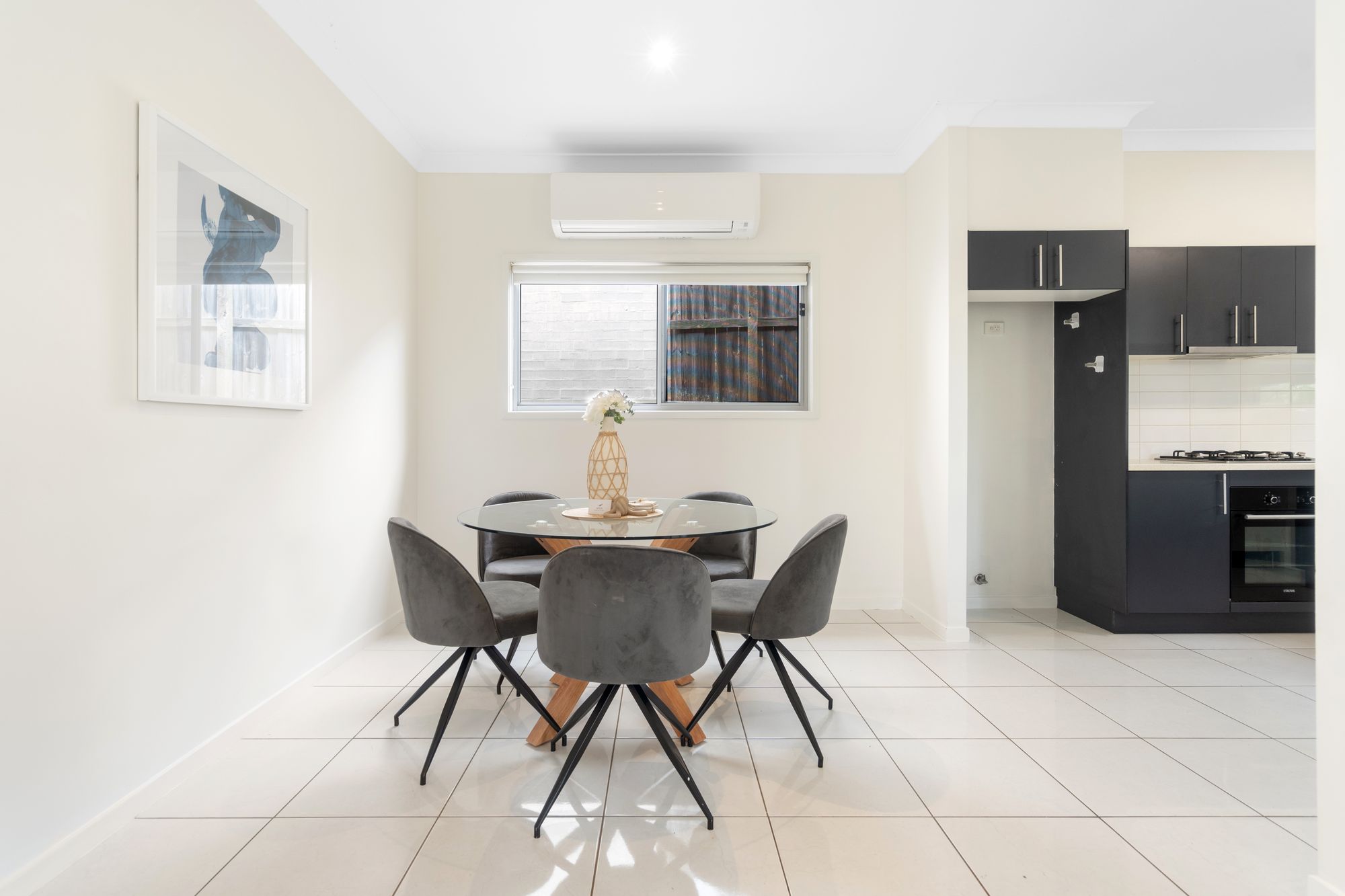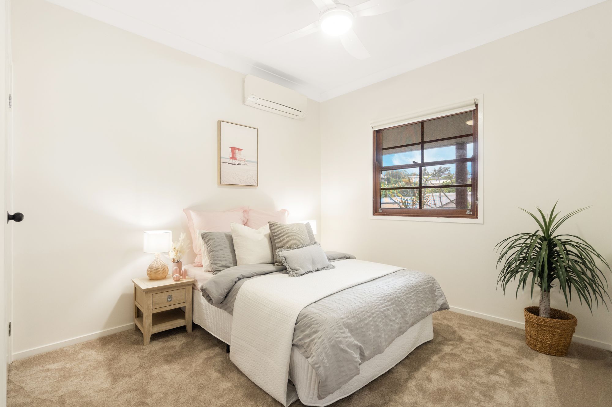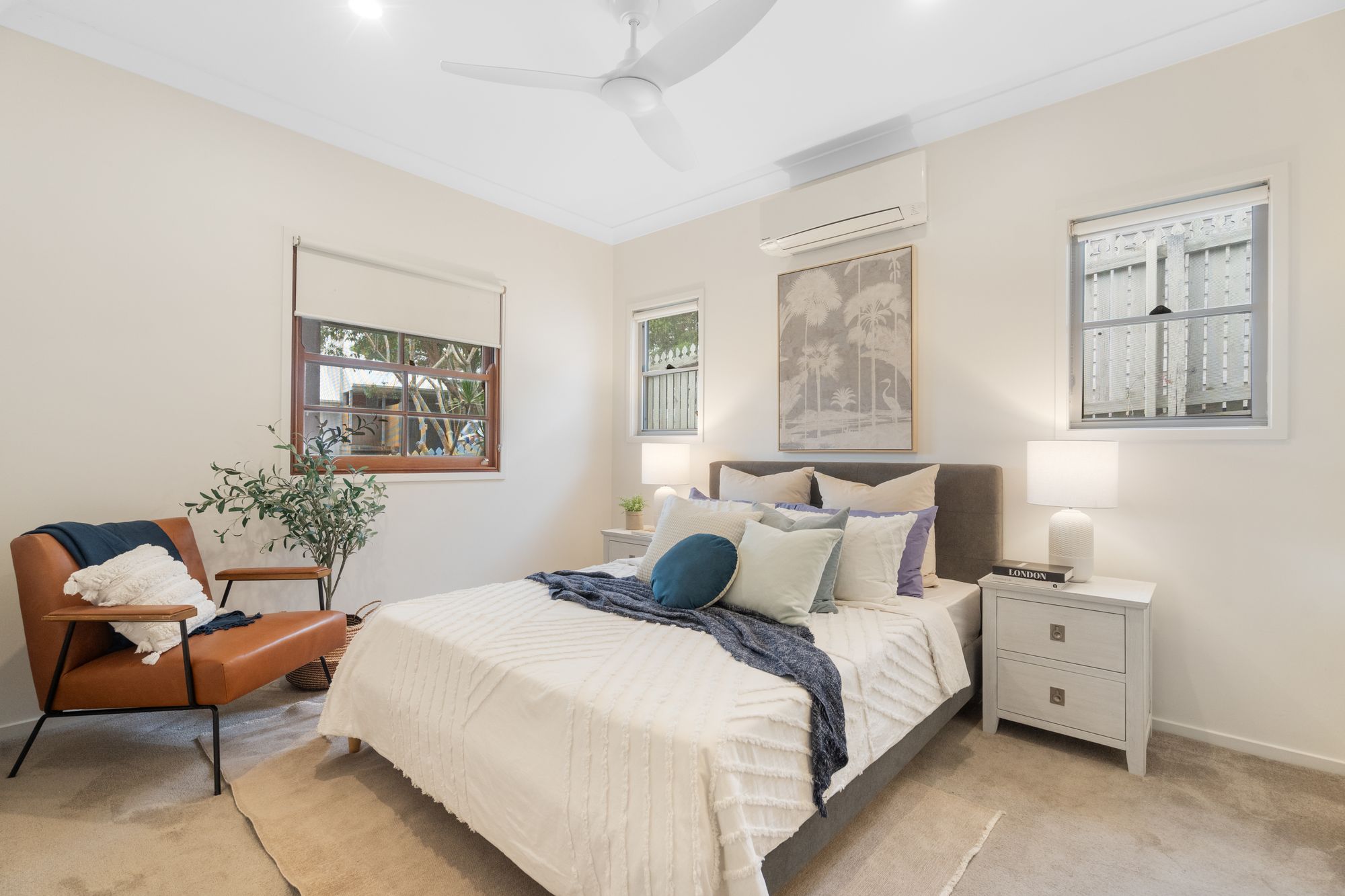 Key Features: - 3 spacious bedrooms with built-in robes, new carpet, and ceiling fans with LED lighting - Master bedroom with a/c, walk in robe and ensuite - 2 well-appointed bathrooms (including en-suite) - Air-conditioning throughout for comfortable living - Modern kitchen with dishwasher and gas cooking - Ceiling fans in rooms for added comfort - 9ft ceilings throughout the house enhancing spaciousness