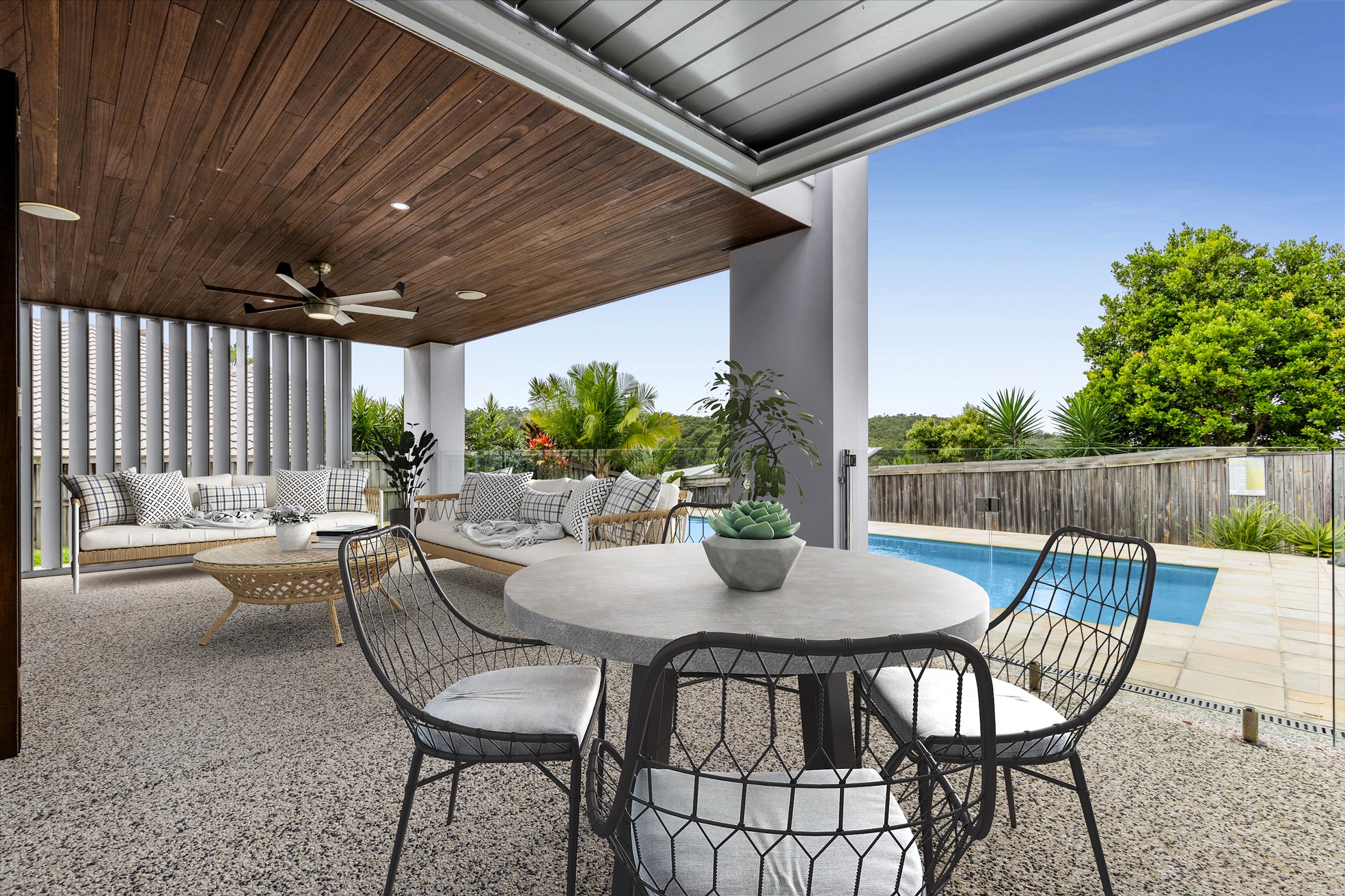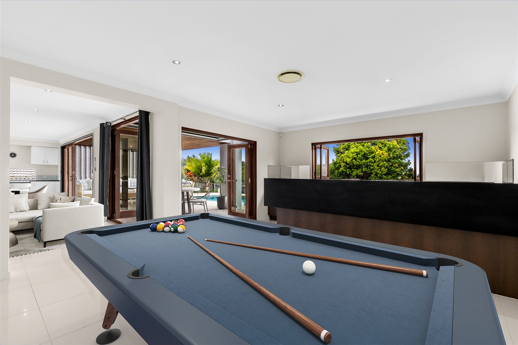 A home created for entertaining, the large glass bi-fold doors allow a seamless transition between the indoor and outdoor living areas. Designed with both relaxation and connectivity in mind, this home boasts an adaptable layout that effortlessly celebrates modern Queensland living. With a large open plan living and dining concept, the light & bright kitchen hosts a large Island bench, stainless-steel appliances, feature pendant lighting and a window backsplash. Adjacent to the sparkling in-ground pool, a covered patio provides a shaded retreat and attractive glass panel pool fencing.