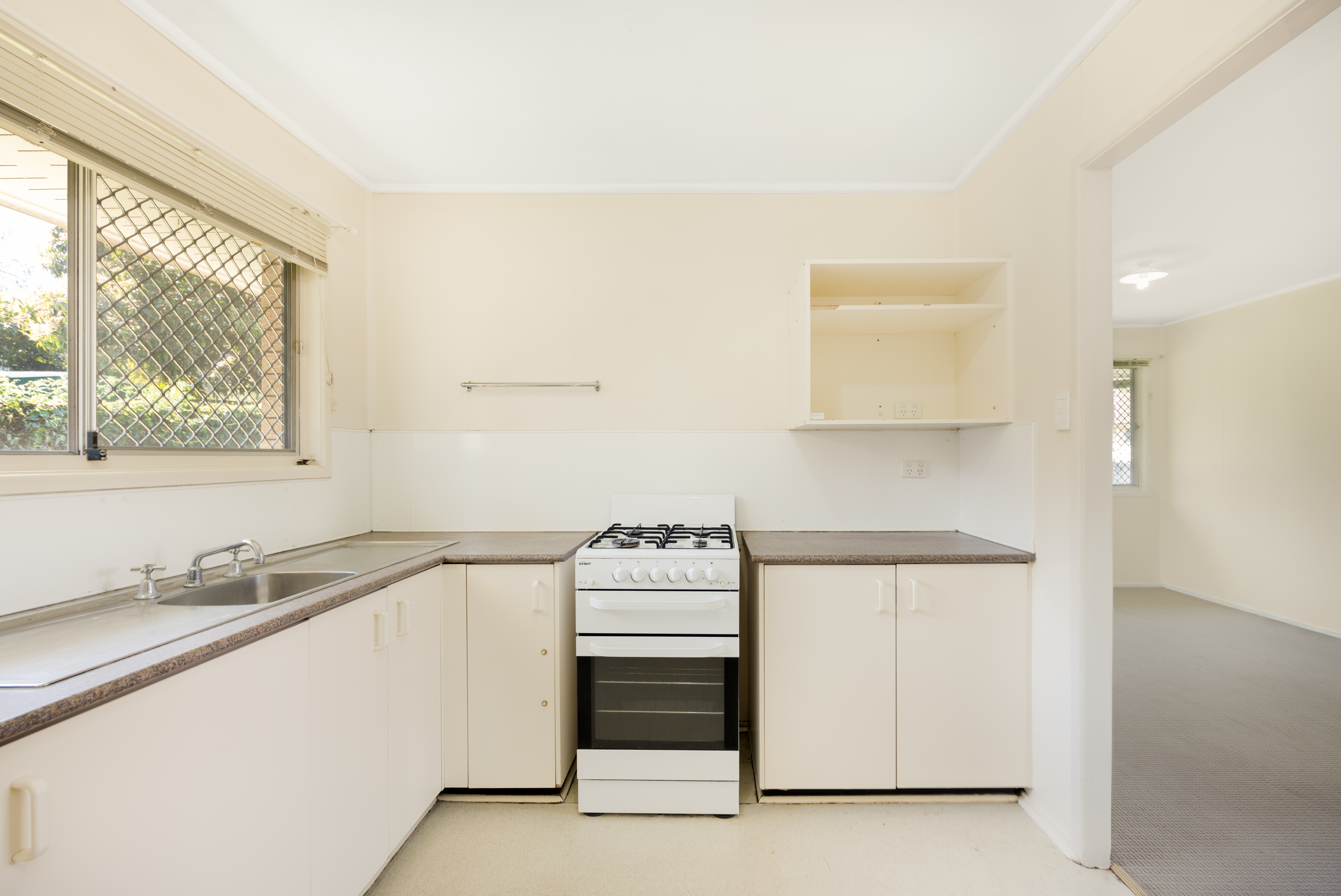 The spacious kitchen provides plenty of bench space and ample storage, flowing directly on to the living and dining space and out to the undercover alfresco area overlooking the large, grassed yard.