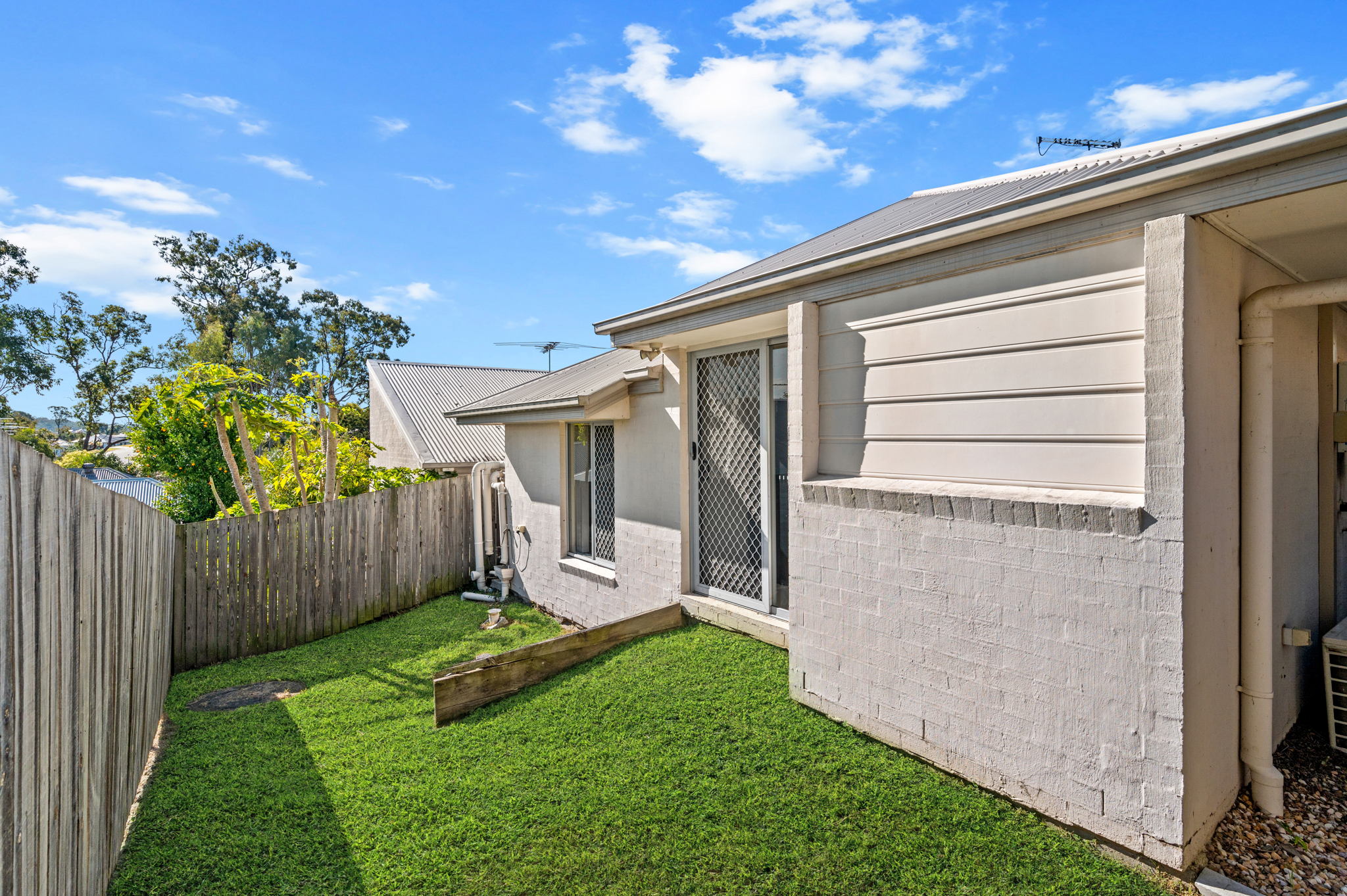 Landscaped 246sqm block with front and side access through glass sliding doors. *