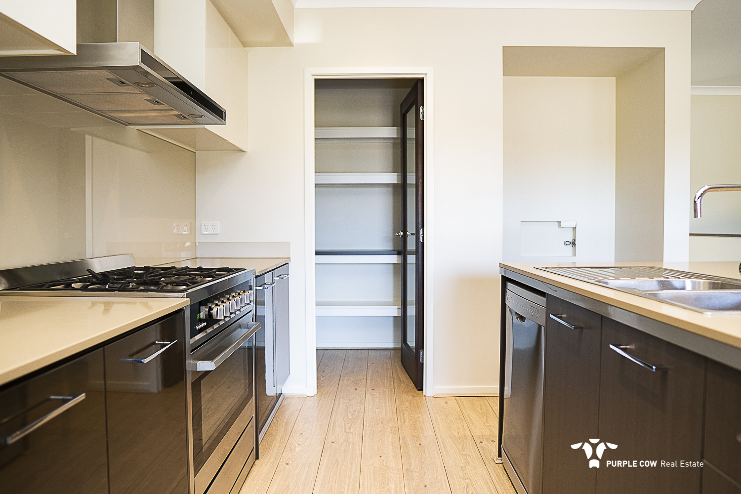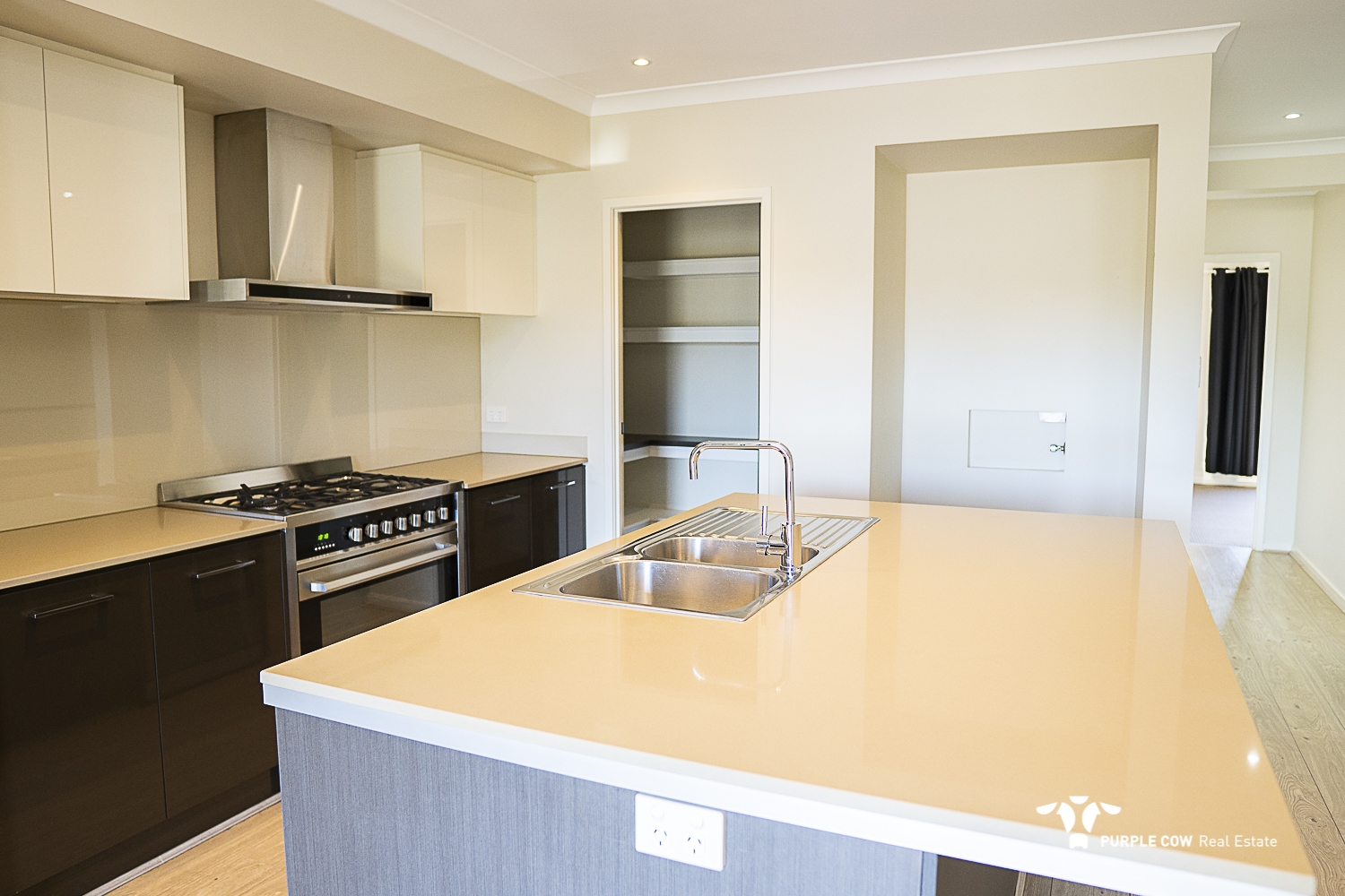 The property boasts four spacious bedrooms and three well-appointed bathrooms, including an air-conditioned master suite with a luxurious ensuite and walk-in robe. The air-conditioned open plan living and dining area provides a comfortable space for relaxation and entertaining, while the modern kitchen is equipped with a large island benchtop, 900mm freestanding gas cooker and a walk-in pantry ensuring practicality and style, while timber effect flooring throughout the living areas adds warmth and elegance.