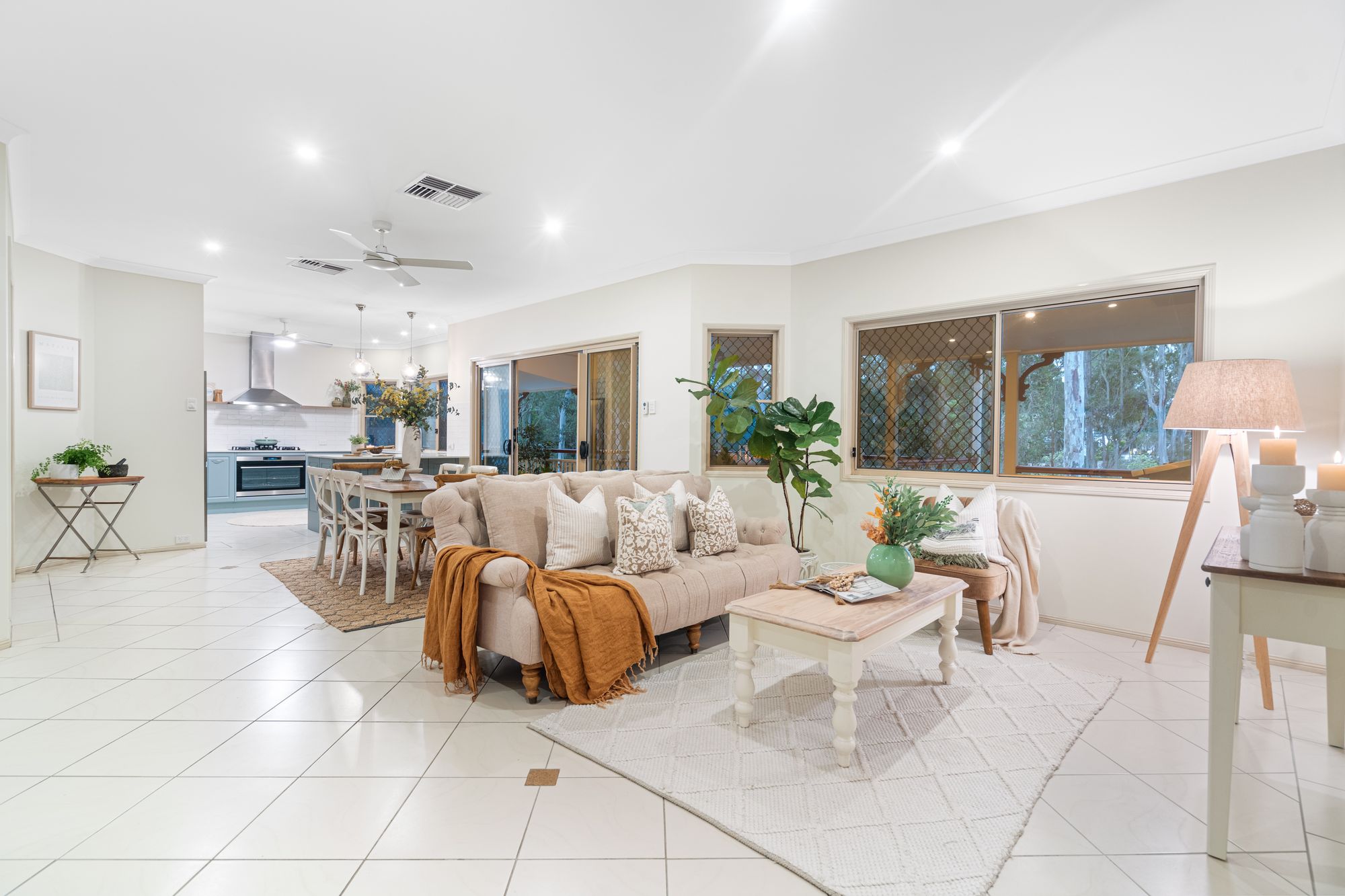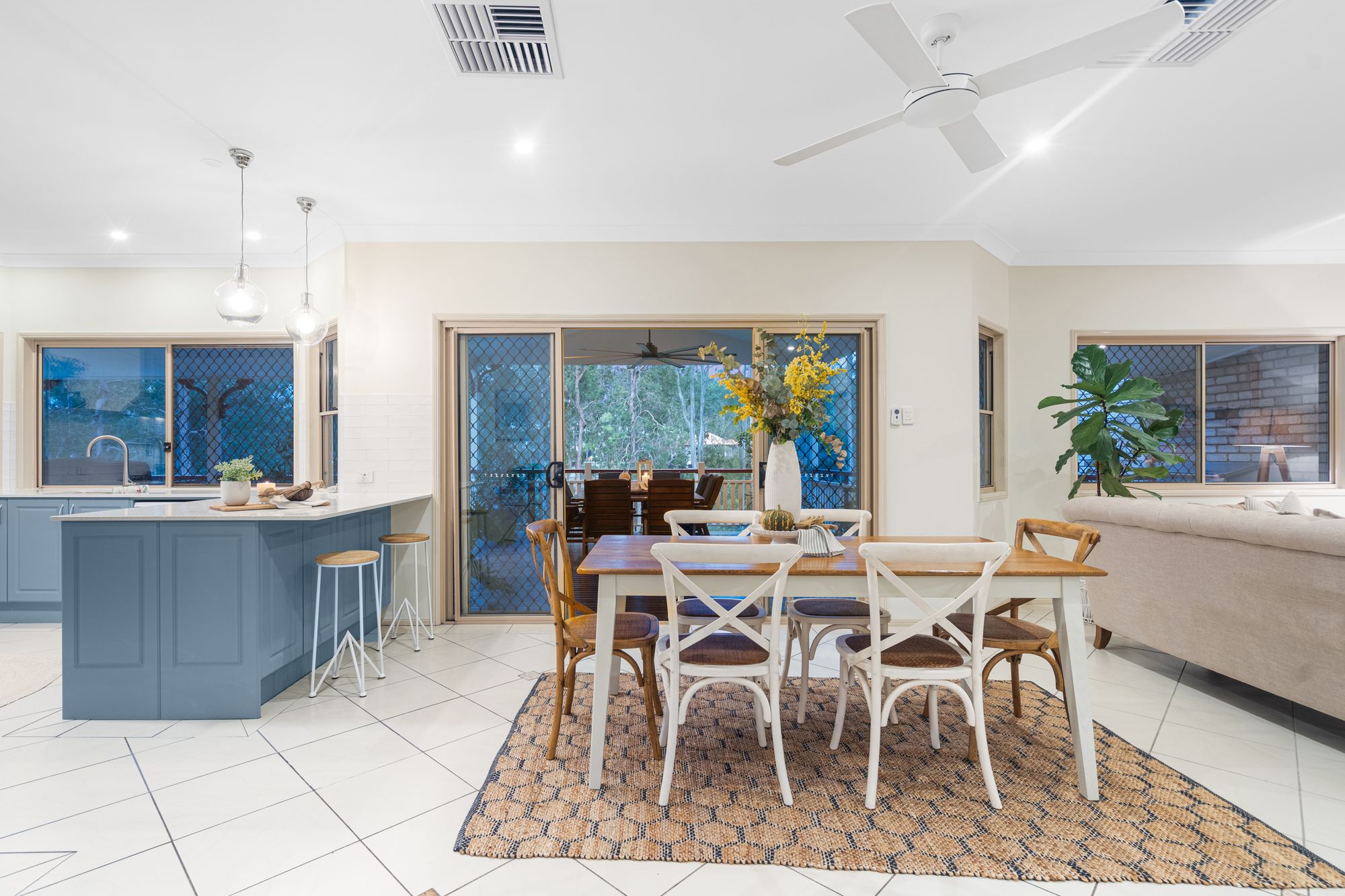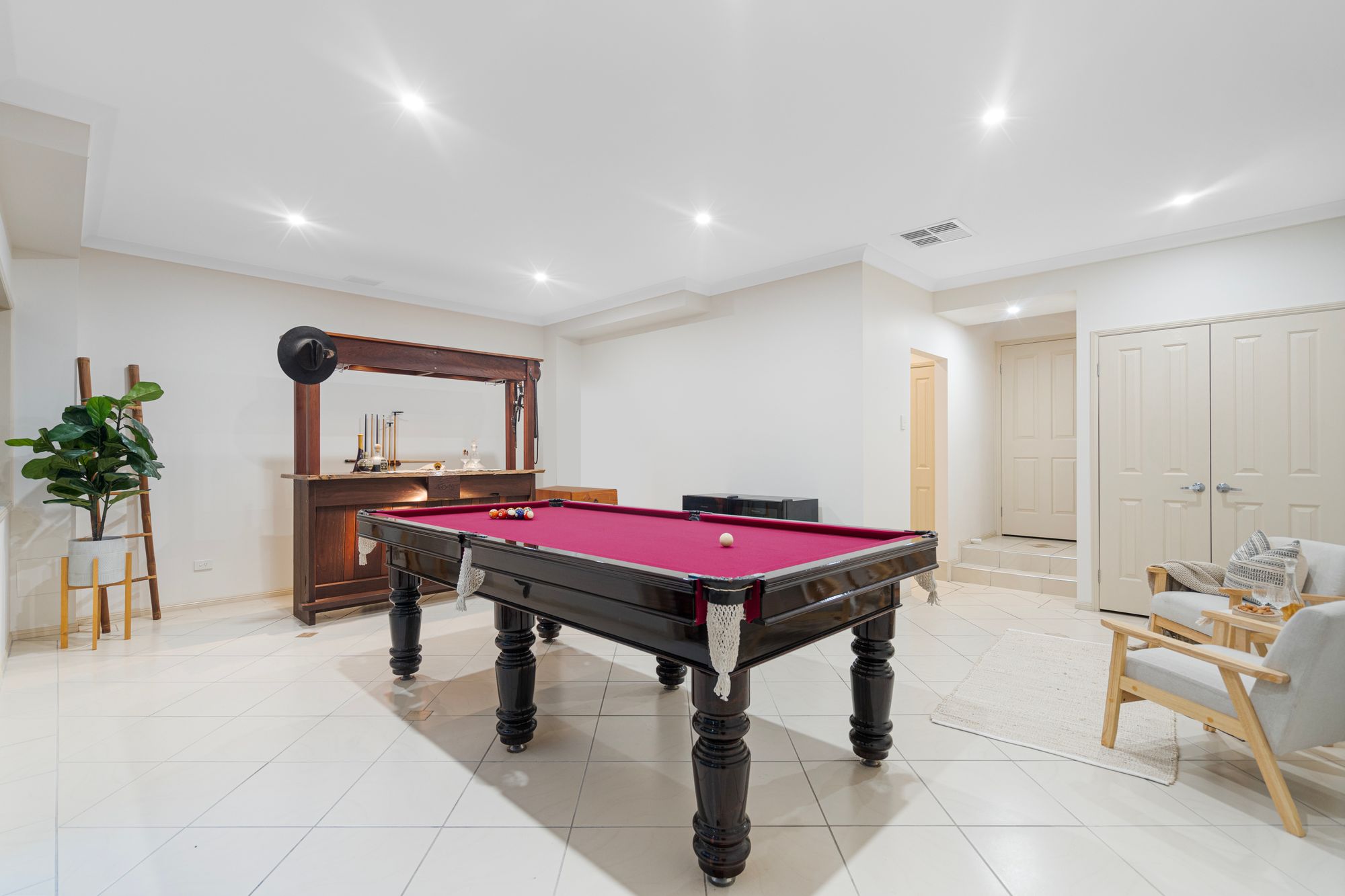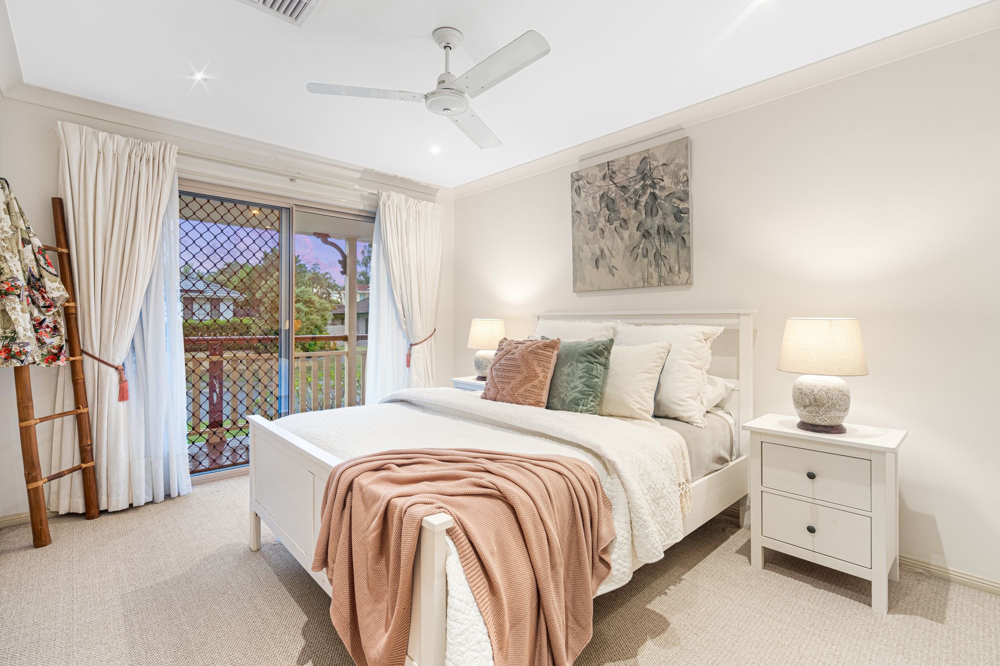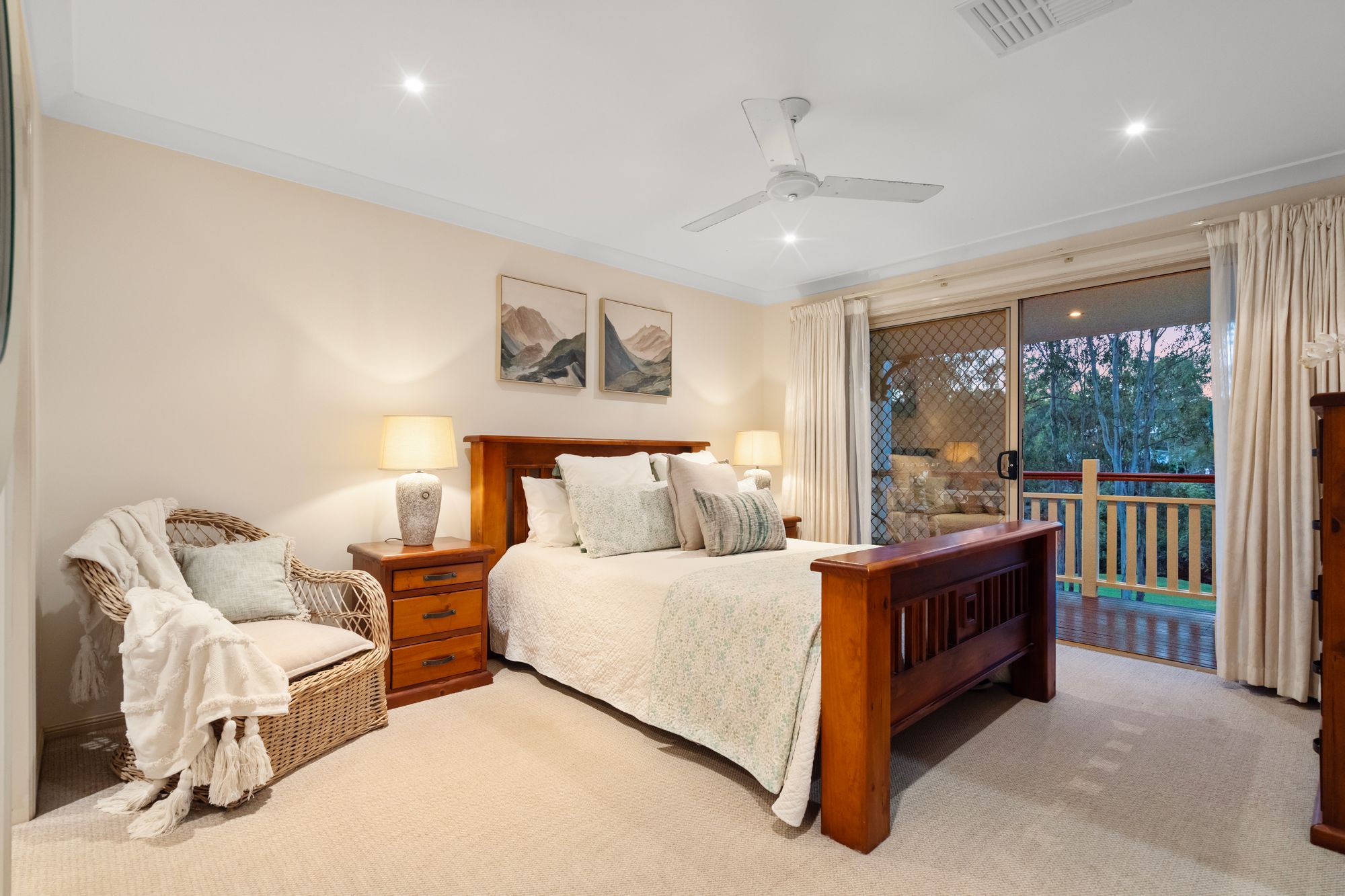 BEDROOMS & BATHROOMS: - Master suite with private balcony overlooking the serene garden and pool area, perfect for unwinding after a long day - Spacious additional 3 carpeted bedrooms with built-in wardrobes, ceiling fans and safety screens - Generous tiled 5th bedroom / study with ceiling fan and safety screens - Modern family bathroom with separate toilet and all the amenities you need
