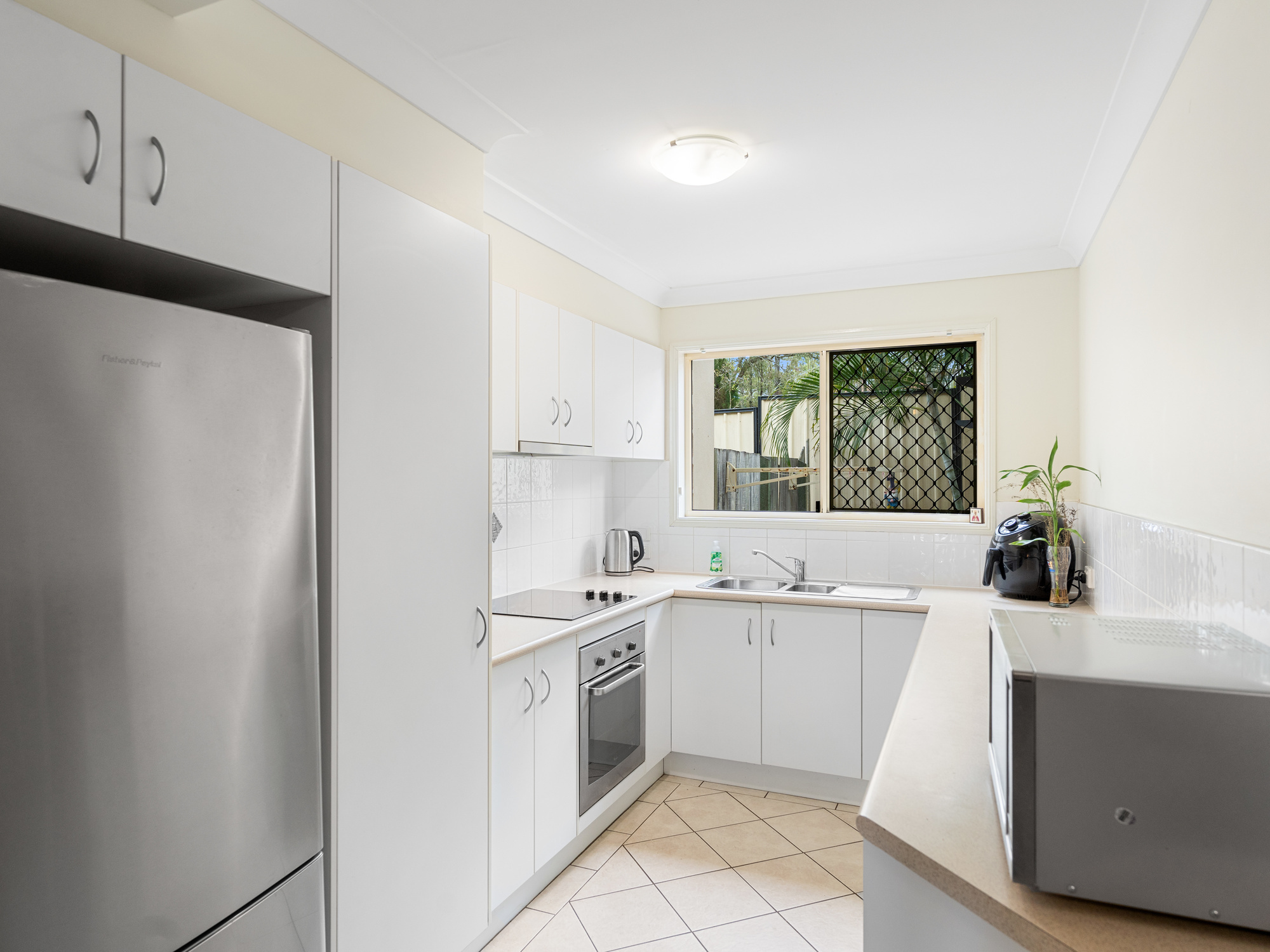 Downstairs as you enter the property you walk in to a generous sized lounge/dining that leads out on to a secluded private paved courtyard. The well appointed kitchen has plenty of bench space and also overlooks the courtyard.
