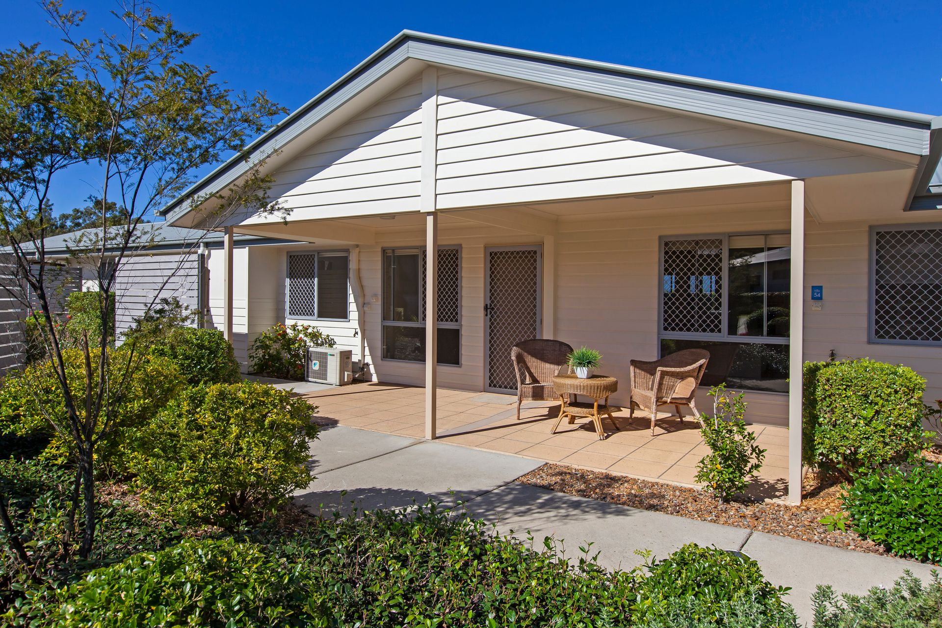 Relax with confidence in a gated community set in an elevated position surrounded by beautiful gardens. We offer purposefully designed villas with spacious indoor-outdoor areas and a full sized kitchen perfect for low maintenance living.